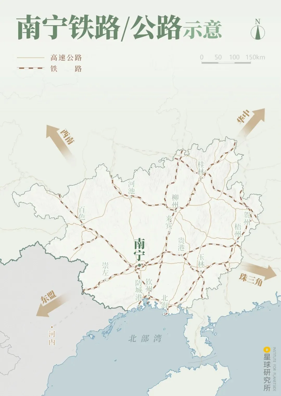 南宁铁路、公路示意 | 制图@陈景逸&郑伯容/星球研究所