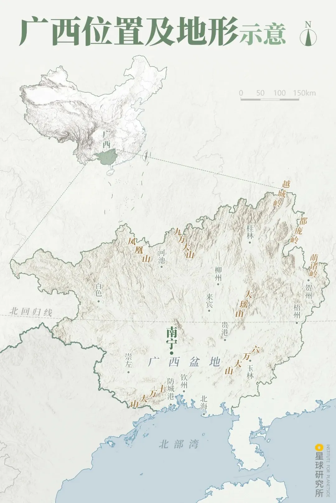 广西位置及地形示意| 制图@陈景逸&郑伯容/星球研究所