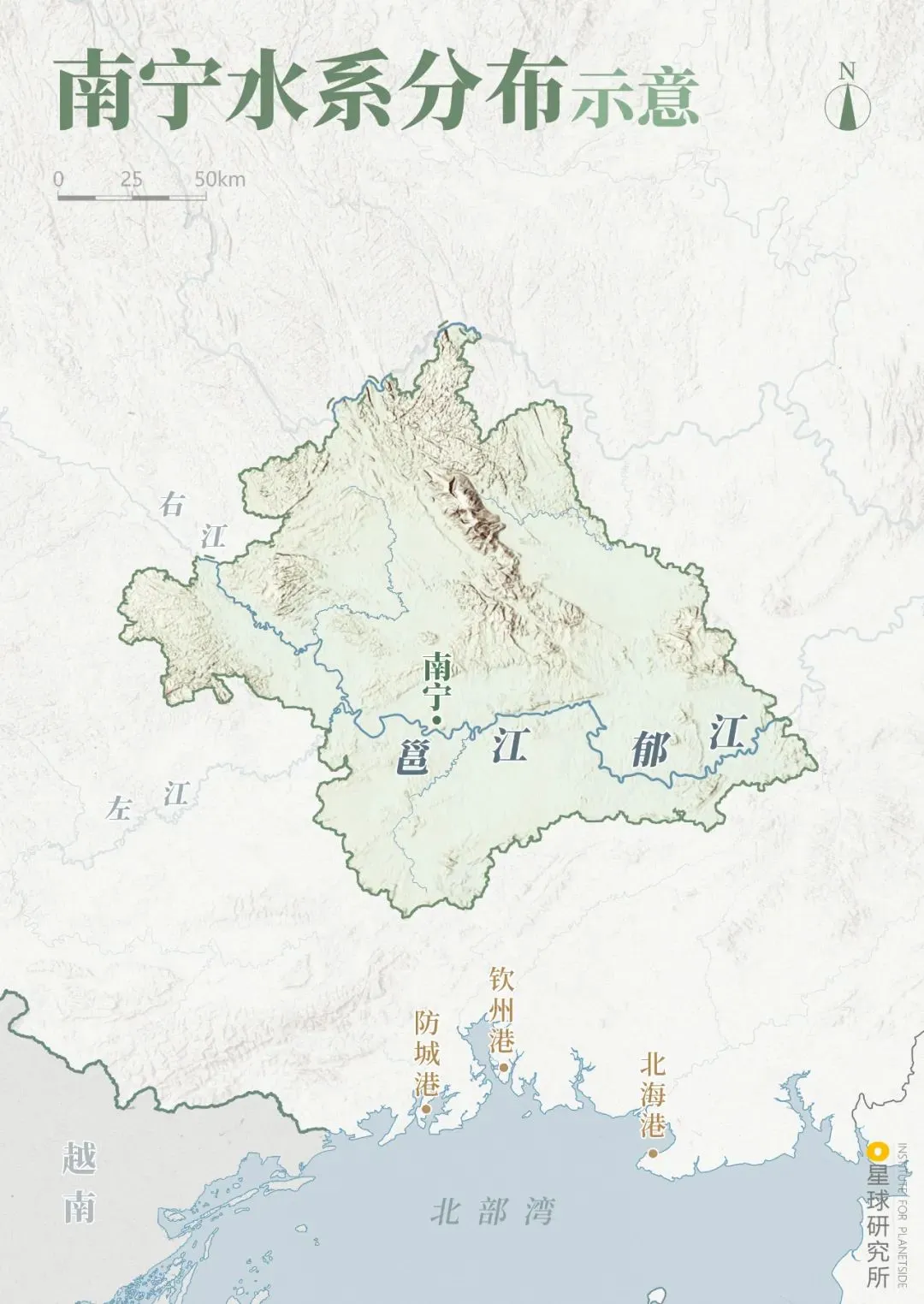南宁水系分布示意 | 制图@陈景逸&郑伯容/星球研究所