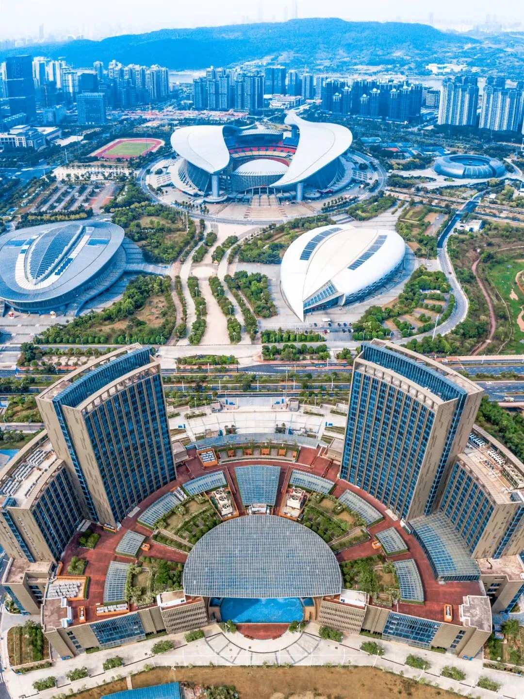 区内,拥有大剧院、音乐厅、多功能厅的文化艺术中心,气势恢弘。占地130余万平方米的广西体育中心,充满现代气息。