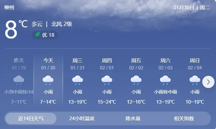 柳州将迎接新的风雨降温天气
