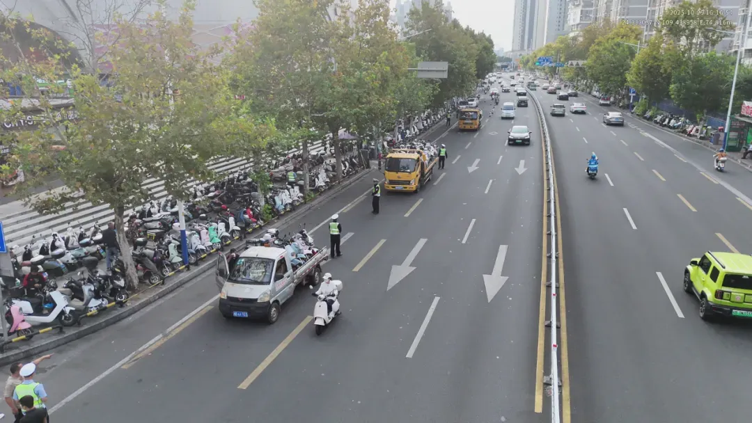 针对这一交通隐患,城中大队创新采用 “柔性劝导 + 依法处置” 的执法模式。行动中,民警先通过无人机对违停车辆进行隔空喊话,提醒车主及时驶离;对经劝导仍未挪车的,再依法开展拖移作业,确保道路通行顺畅。