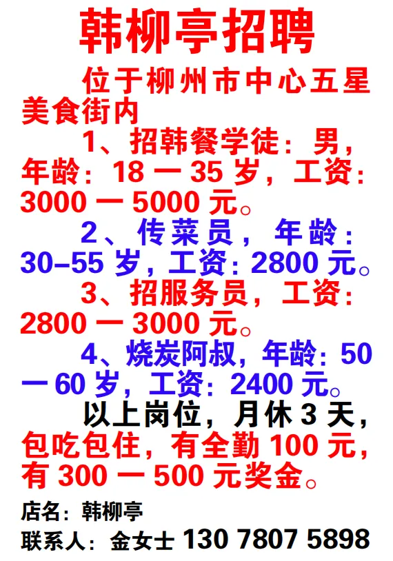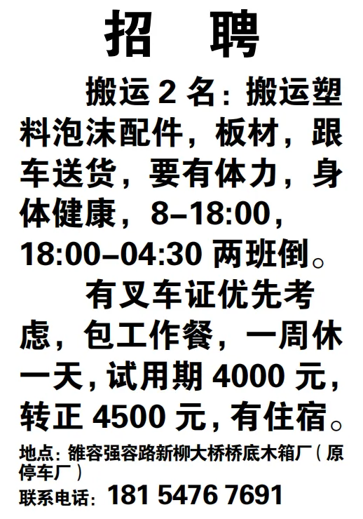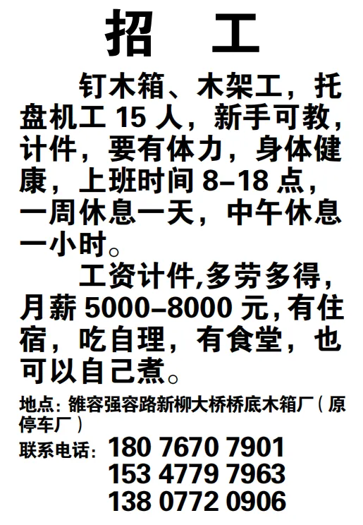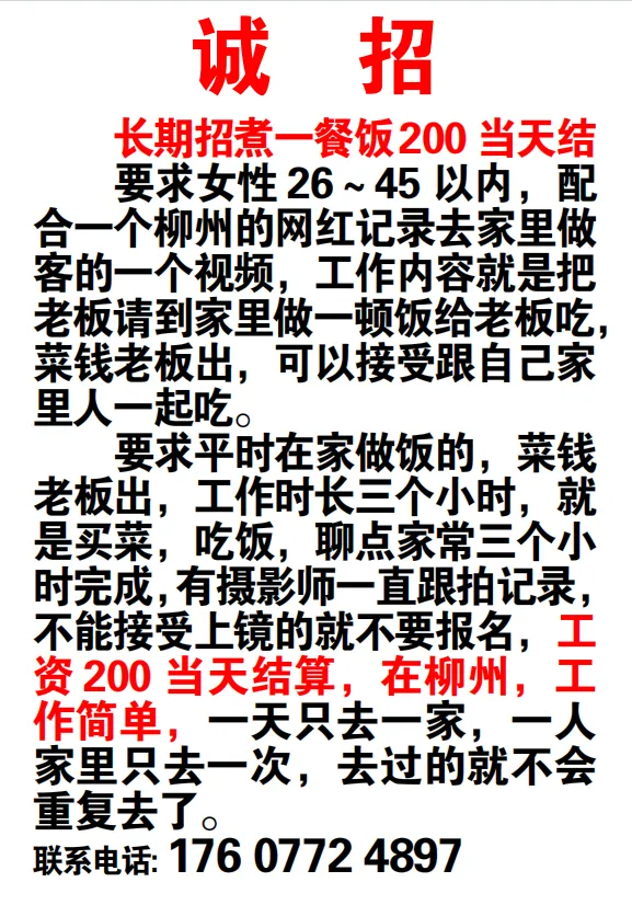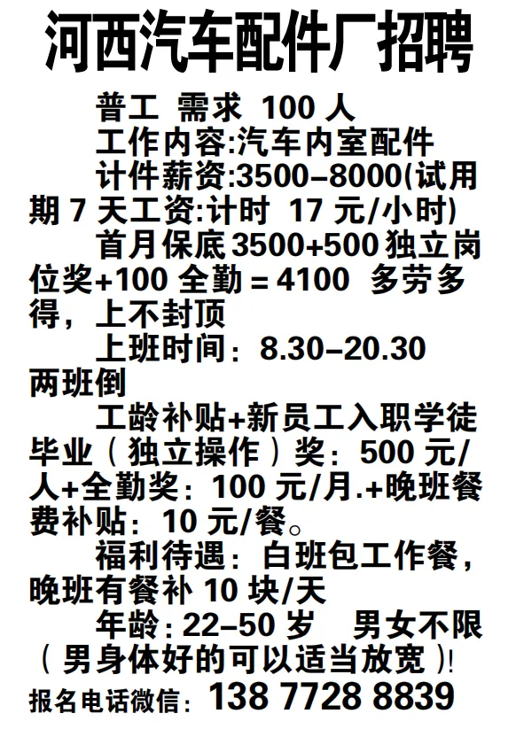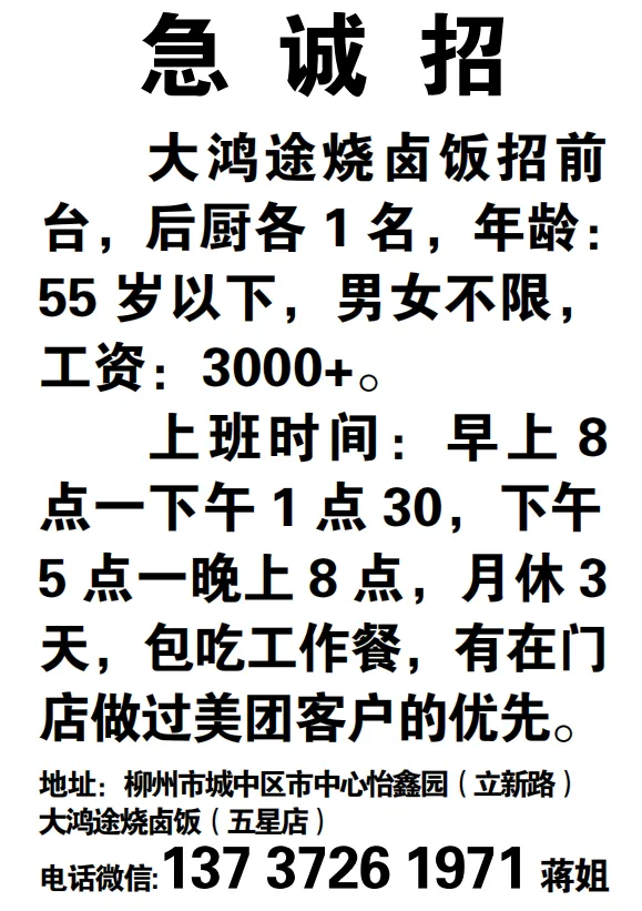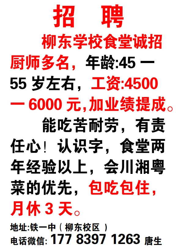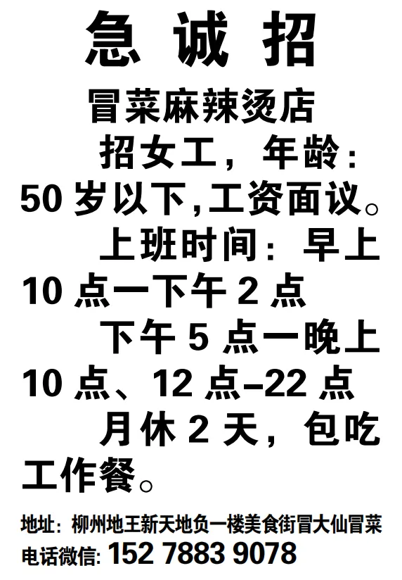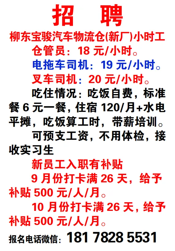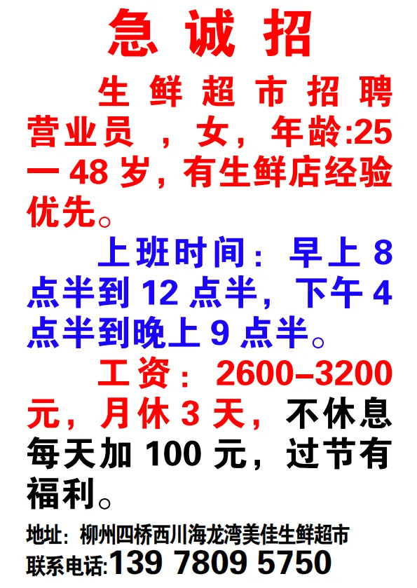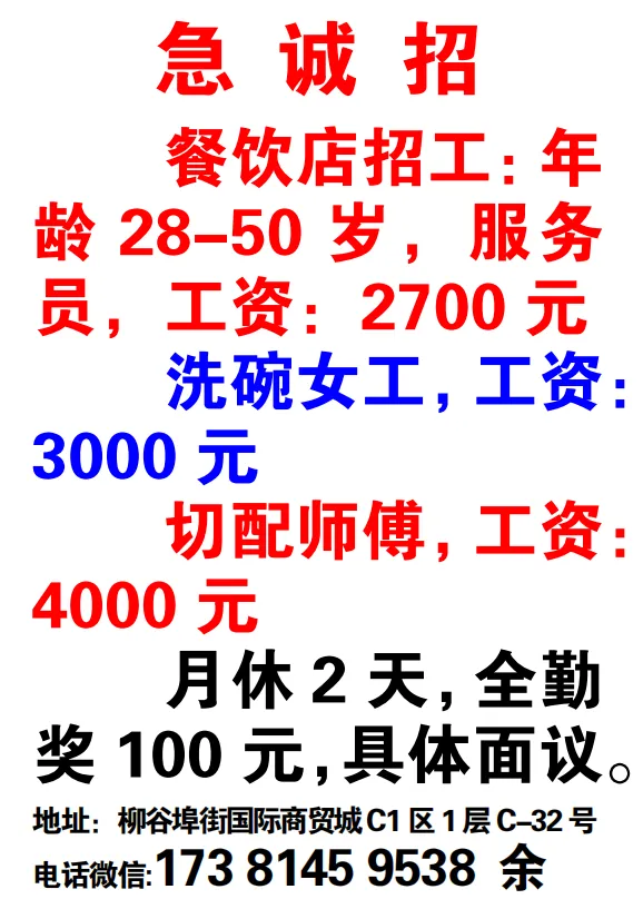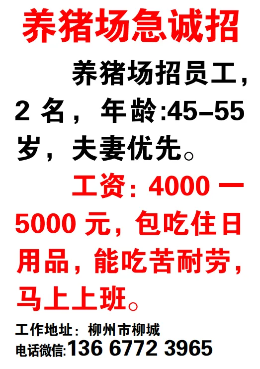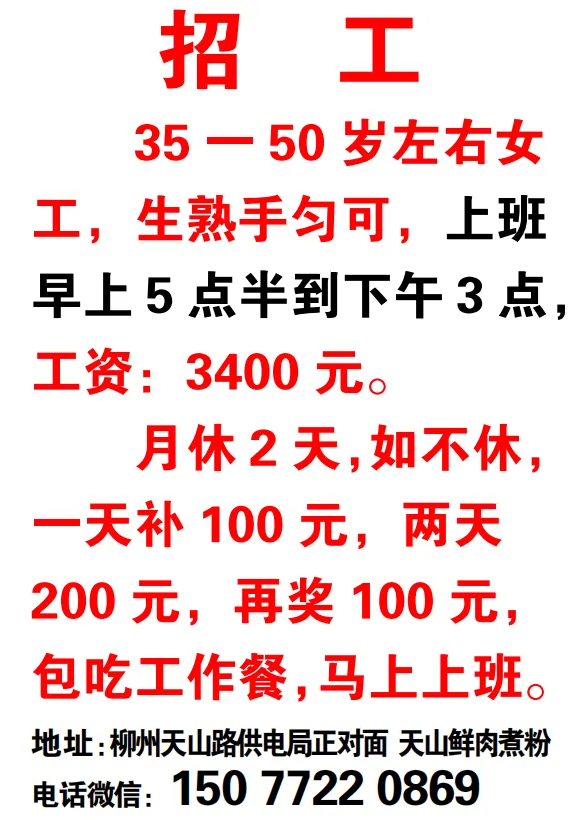 招保安20名,男53岁以下,工资:3800元,月休3天,上班12小时,固定白班、夜班,地址:静兰路、古亭山小区、柳南区基隆小区保安,电话微信:19217723269