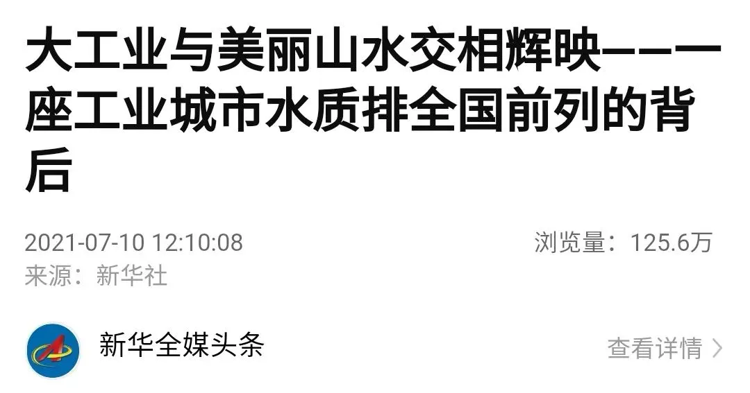 2021年7月10日,新华社重点栏目“新华全媒头条”刊发重磅报道《大工业与美丽山水交相辉映——一座工业城市水质排全国前列的背后》,用图文、视频融合报道形式深度报道柳州深入学习习近平生态文明思想,坚定贯彻“两山”理论,坚持高质量发展、绿色发展的生动实践。