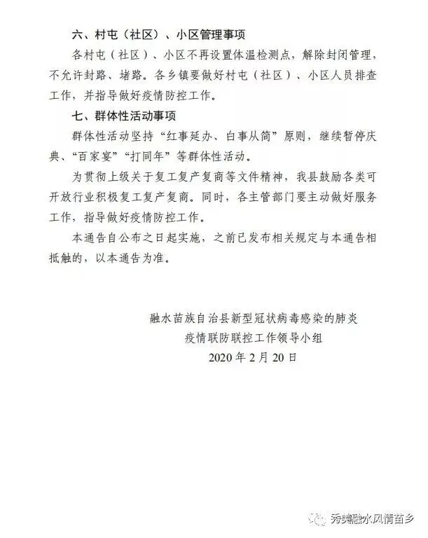 (三)在疫情防控解除前,未经县疫情防控指挥部允许,严禁开展大规模促销、聚餐、集会、展览展示等涉及大量人员聚集的活动。