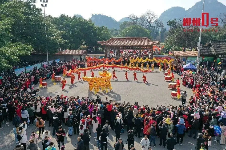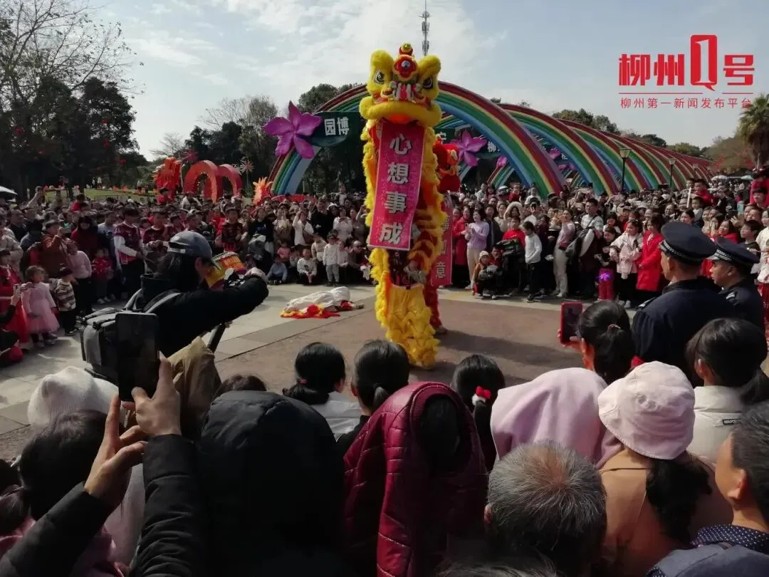 “龙舞春风”舞狮表演为春节增添了喜庆的氛围