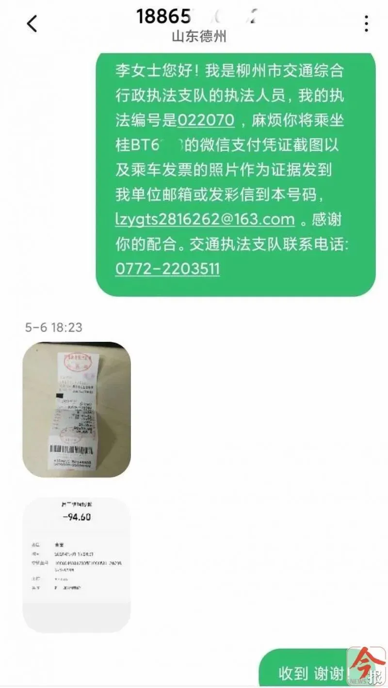 据李女士介绍,5月1日下午3时,她从山东德州来柳州访亲,下飞机后在白莲机场打了一辆车牌号为桂BT6XXX的出租车前往古亭山恒大城。到目的地后,她发现这一次打车费用是94.6元,比以前多了20多元。她怀疑出租车司机有绕路之嫌,于是打电话向12345政府热线投诉。