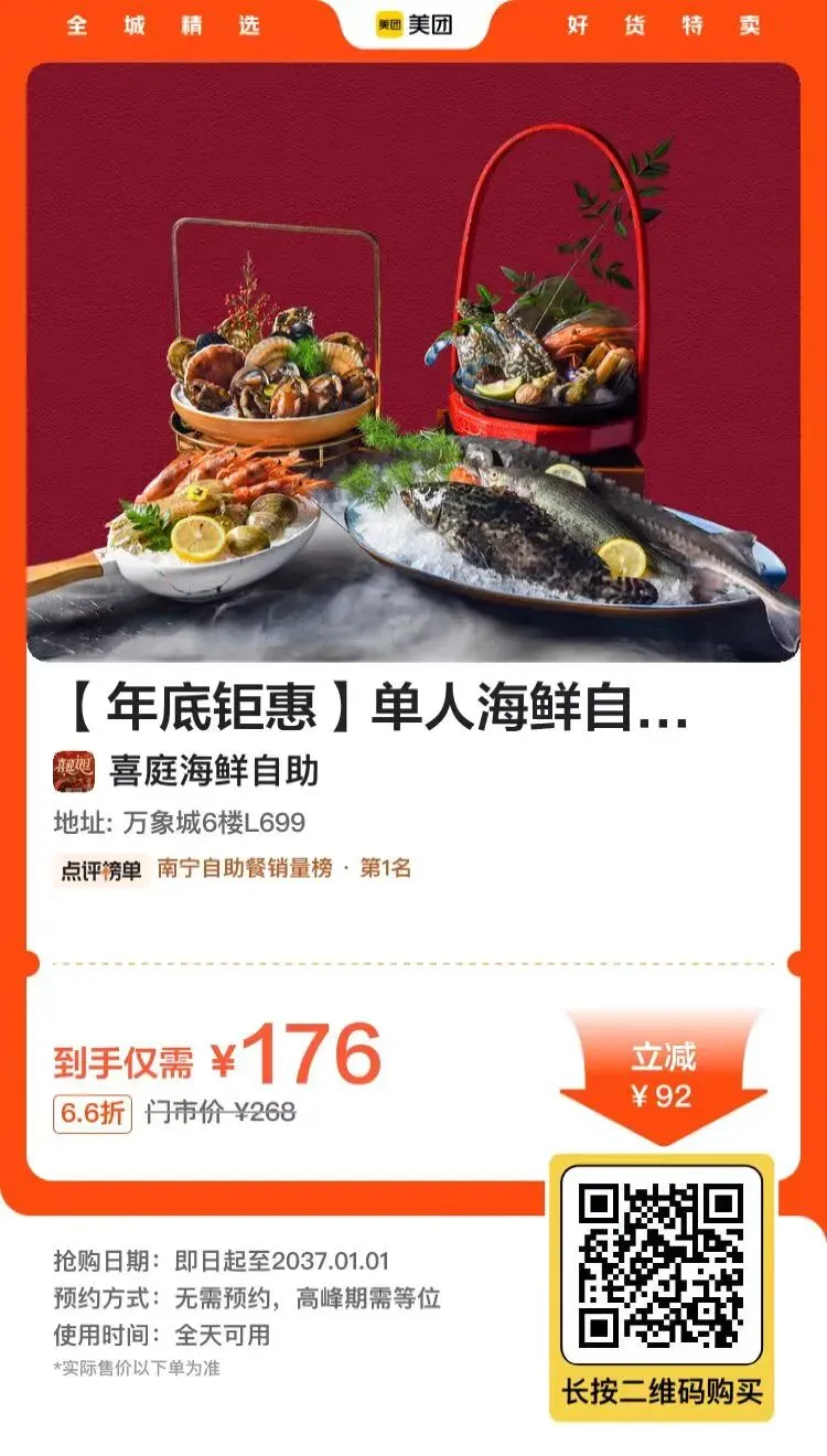 >南宁 | 喜庭海鲜自助:【年底钜惠】单人海鲜自助餐