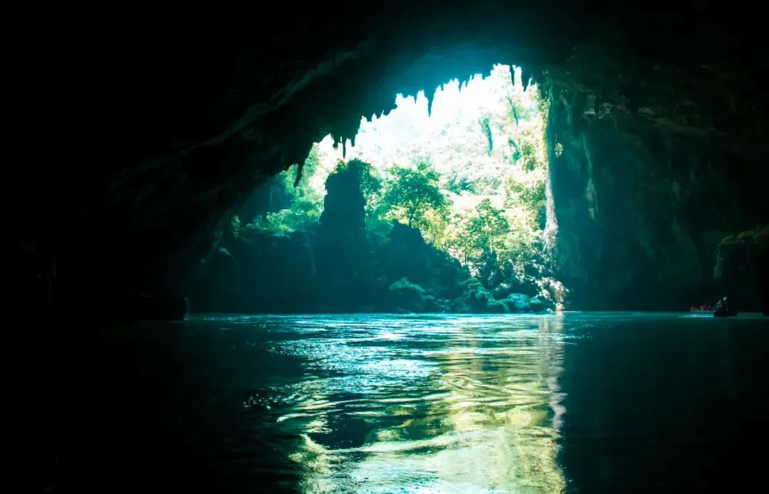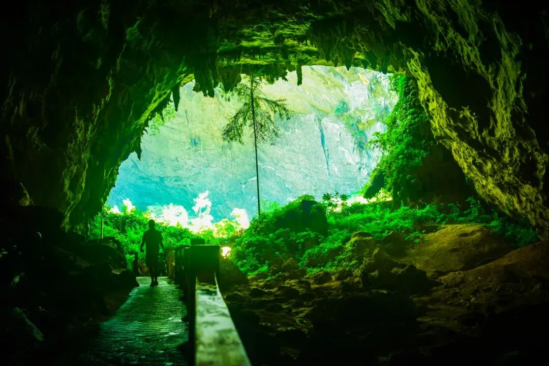 百鸟岩:湖水清澈透亮,全程坐竹筏游览,进洞神秘且壮观,岩洞里的钟乳石千姿百态
