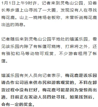 1月1日上午8时多,有网友称,2025年12月30日晚,南宁灵龟山公园有两只梅花鹿出逃,已寻回一只,若有另外一只梅花鹿的消息,请私聊,有偿。