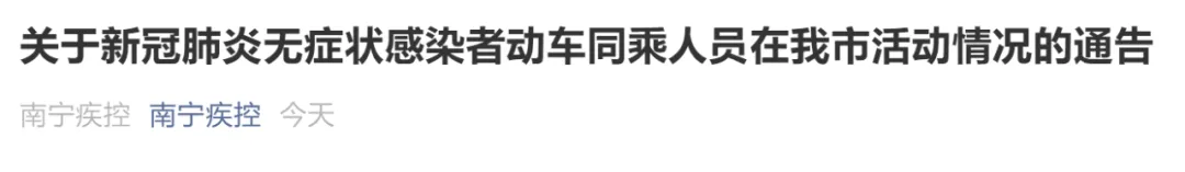 8月14日,南宁疾控官方微信号发布《关于新冠肺炎无症状感染者动车同乘人员在我市活动情况的通告》,对相关情况进行了介绍。