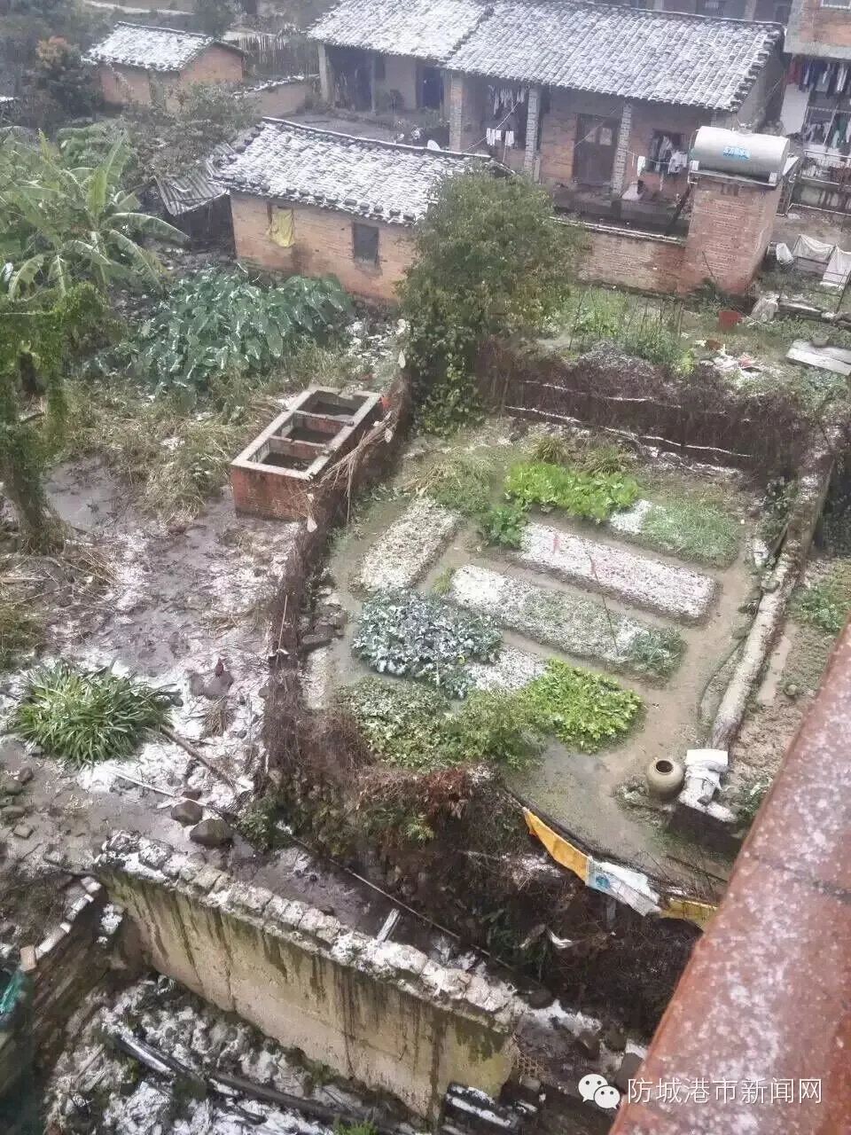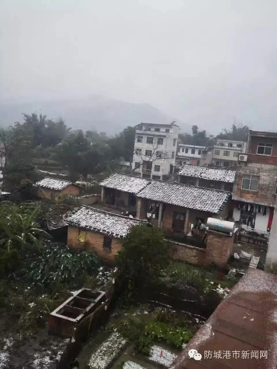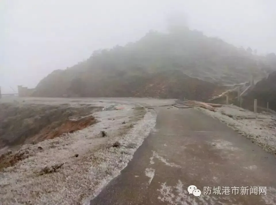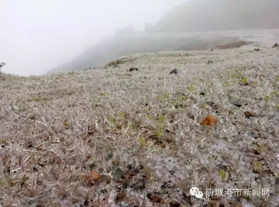 今天早上,上思的华兰乡、公正乡、防城的那梭镇等地方都下雪了。