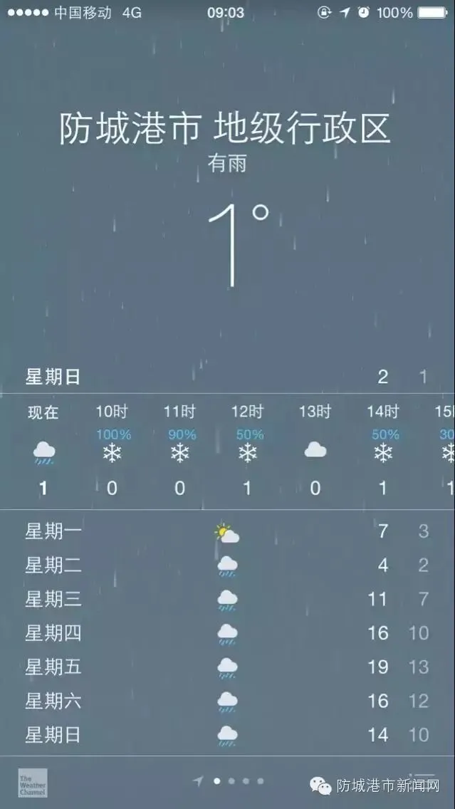 今日防城港市已出现雨雪冰冻
