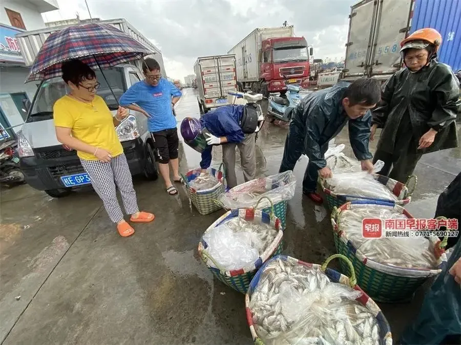 ▲北海第一网海鲜上岸,市民抓紧抢购。南国早报记者 彭庆 摄