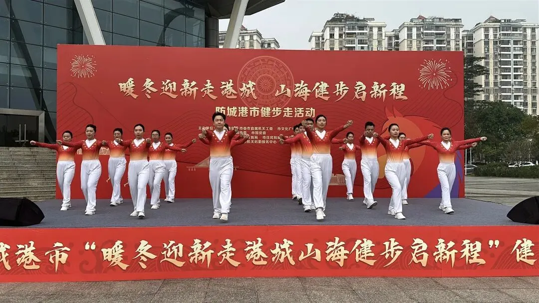 2026年元旦当天,防城港市“暖冬迎新走港城 山海健步启新程”健步走活动热情启程,市总工会组织职工方阵参与健步走活动。在主会场,职工代表进行了“工间操”表演,职工们动作刚劲有力、统一规范,把力量与柔美、激情与活力展现得淋漓尽致。