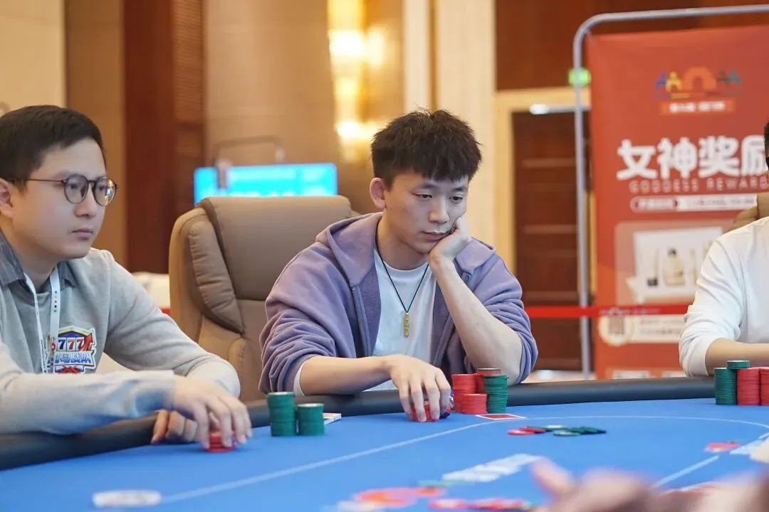 很快,翻牌发出来10♥️7♥️A♣️帮助阙小峰击中一对,但是李靖晶有成顺的机会,