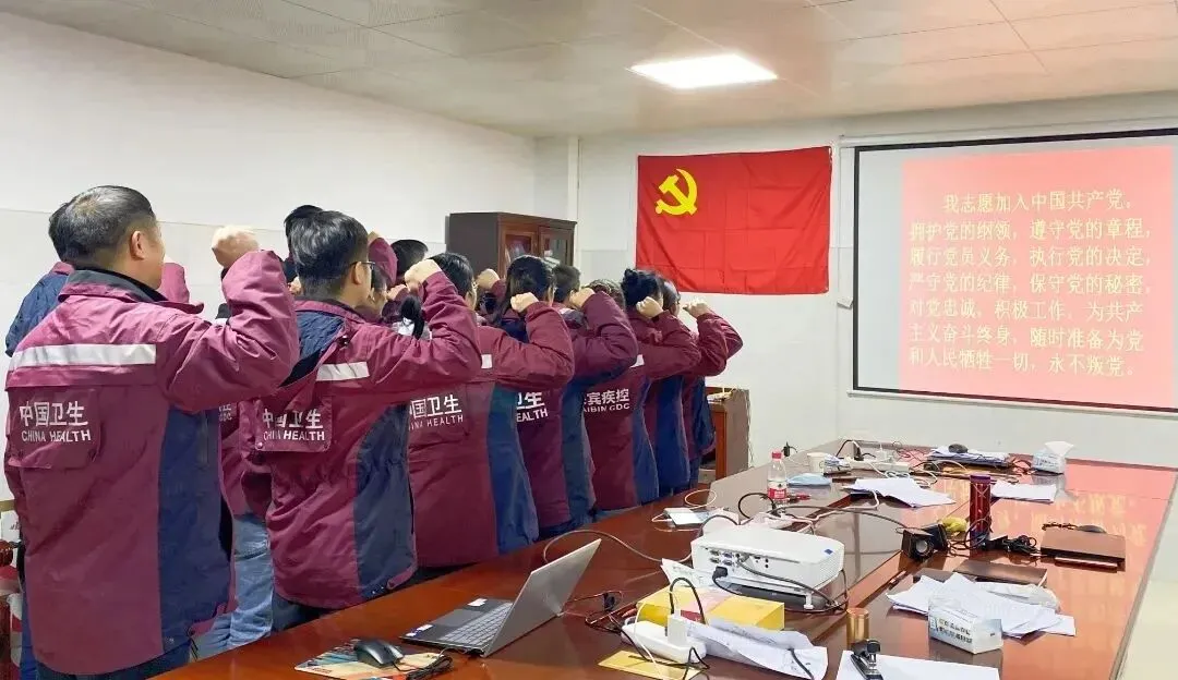 达到后,所有党员干部面对鲜红的党旗整齐列队,重温入党誓词。(韦凤琴 供图)