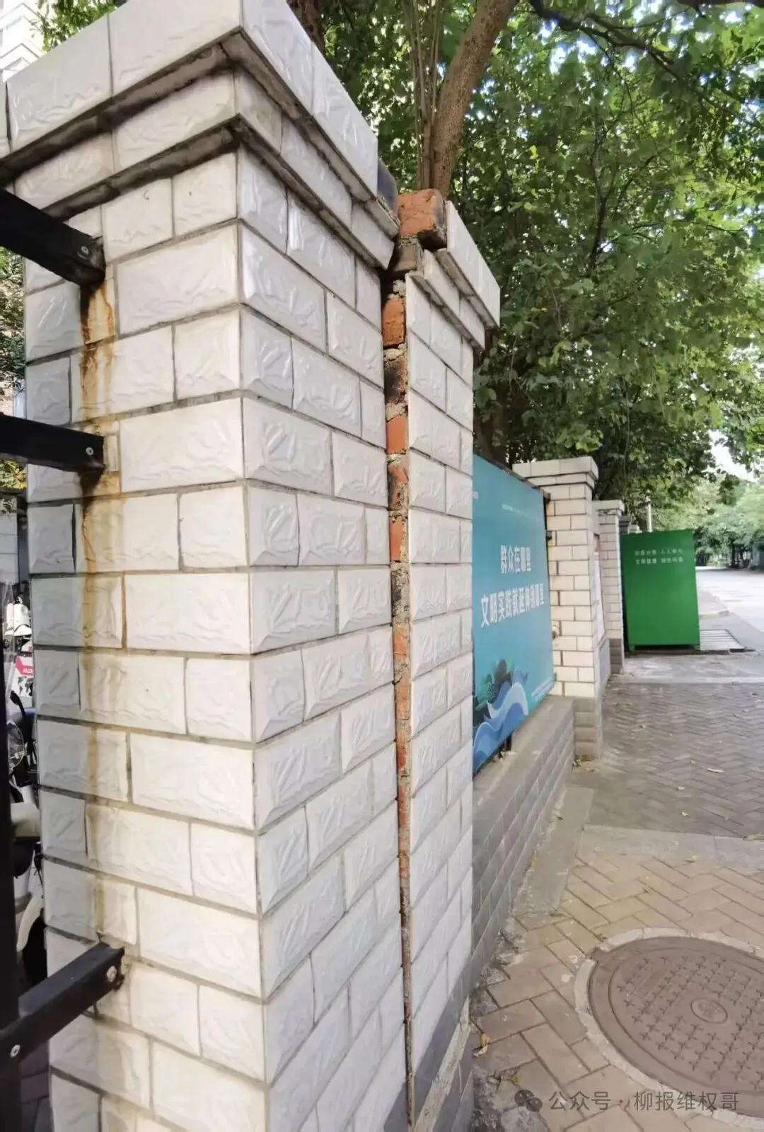 小区围墙存在墙体开裂的情况。