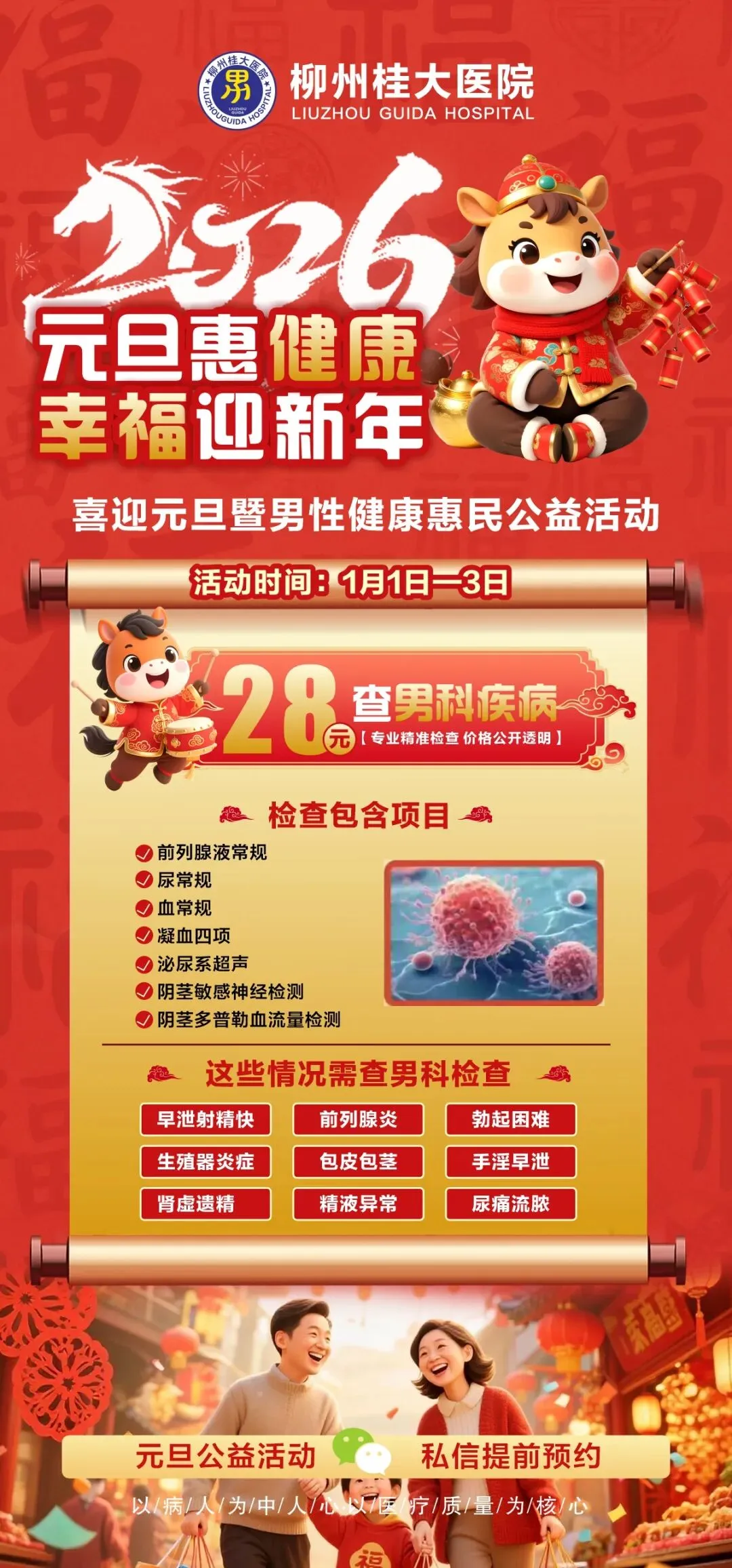 重点强调:为了方便患者就诊,[柳州桂大医院]在元旦期间正常接诊,实行无假日门诊。你可以随时前来就诊,无需担心假期看病难的问题。我们还提供在线预约挂号服务,让你无需排队等待,节省时间和精力。
