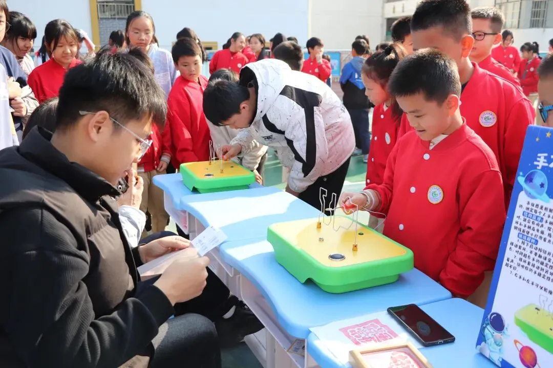 在人工智能区,“智能语音对话机器人”“AI绘画生成器”让学生与前沿技术零距离互动;工程实践区,“桥梁承重挑战”“投石机设计与制作”考验动手能力与工程思维;传统工艺区,“活字印刷术体验”“古法造纸小工坊”将现代科技与传统文化巧妙融合;微观探索区,“显微镜下的奇妙世界”“电路拼接小实验”则带领学生观察肉眼不可见的科学细节。每个摊位都配备专业教师指导,学生通过操作、观察、提问,在“玩中学、做中悟”,真正实现了科学启蒙的“沉浸式体验”。