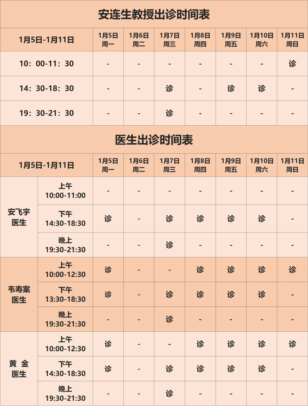 周三(上午不出诊)