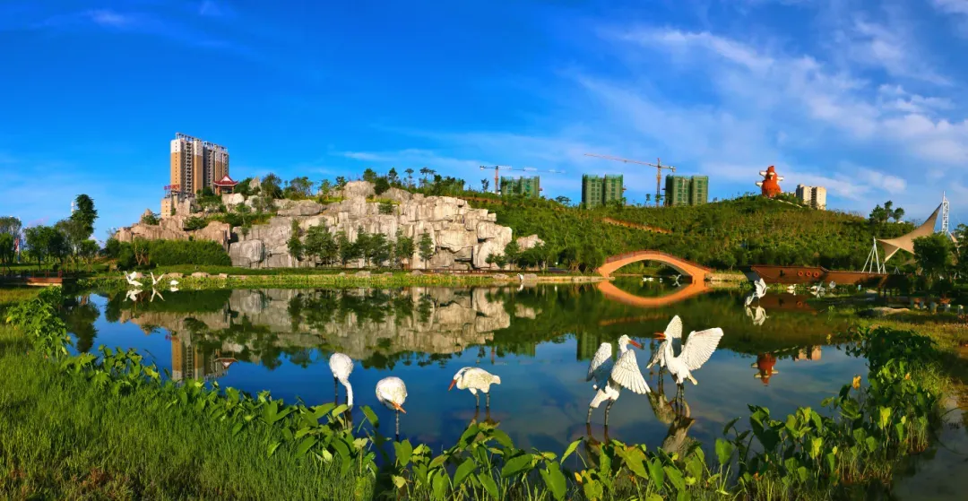 那条运河是我国古代唯一的海上运河,连接西湾和珍珠湾,当年的粮食、丝绸就是从这里运到海外的。”