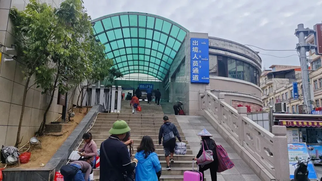 口岸西侧是奔赴越南的行人通道,东侧是归乡者的脚步。