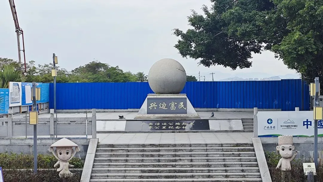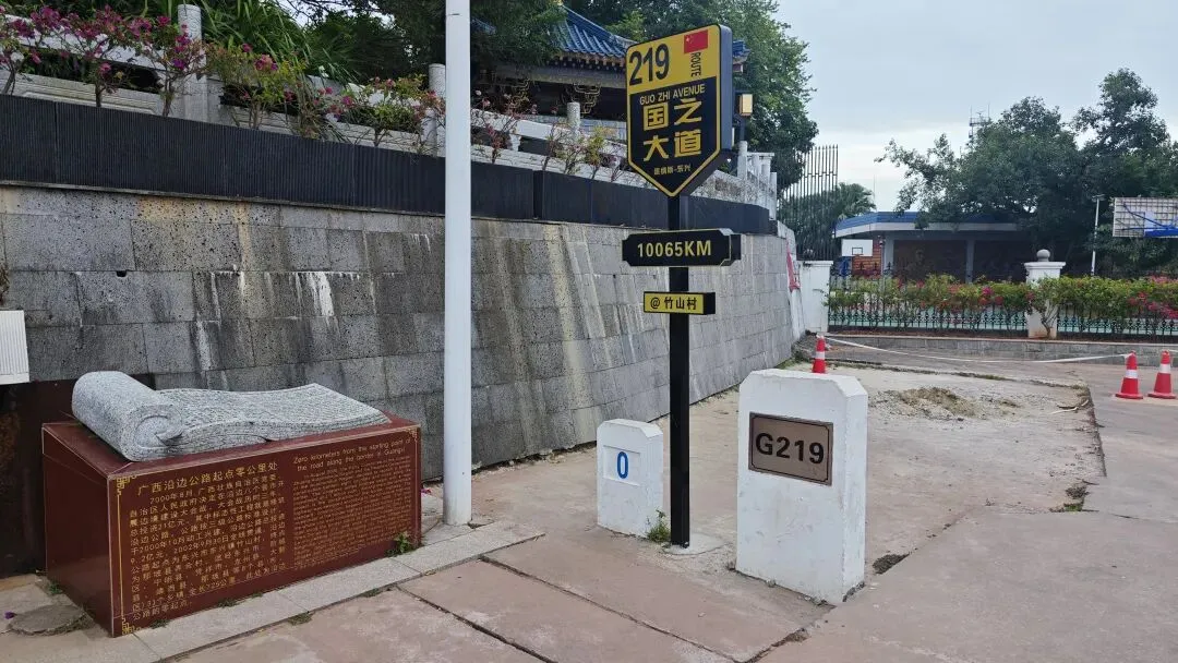 此处既是广西沿边公路 G219 国道的起点,也是从辽宁丹东延伸而来的 G228 国道的终点,两条国之大道在此交汇,一头连着东兴的碧海,一头通向祖国的雪原与海岸。