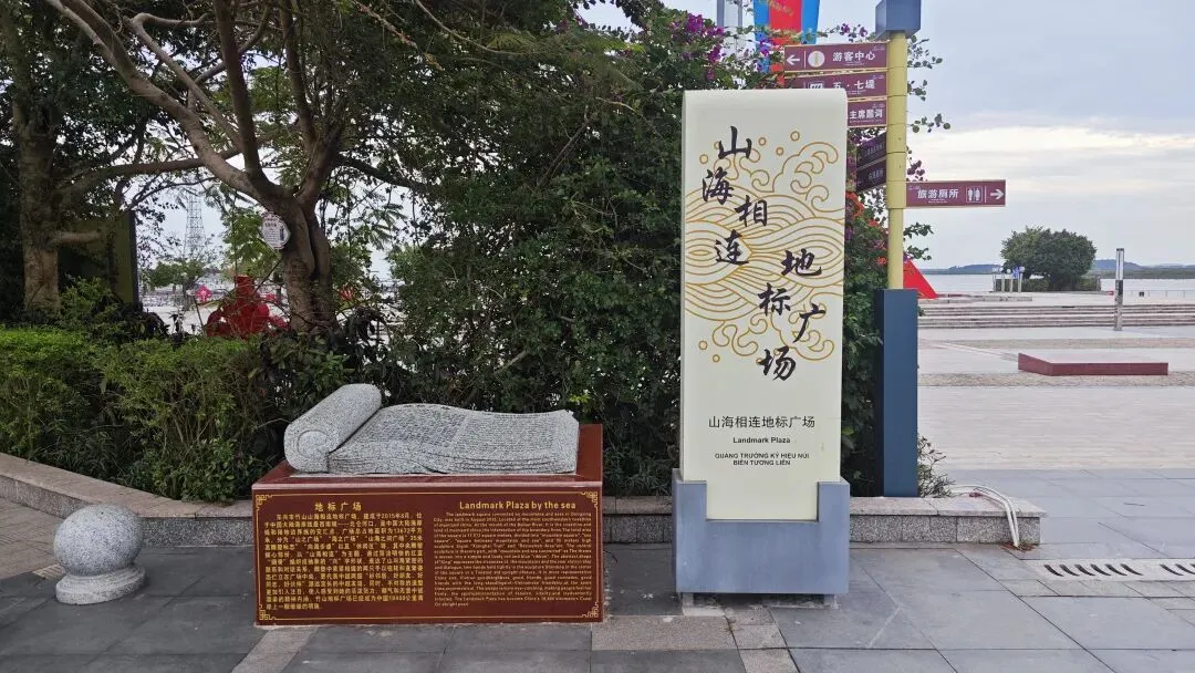 山海相连地标广场上,红蓝雕塑相映,“海誓山盟从此开始” 的石刻,将边境的壮阔与浪漫悄然融合,背靠十万大山,面朝北部湾,山海相拥间,尽览边陲大地的壮阔格局。