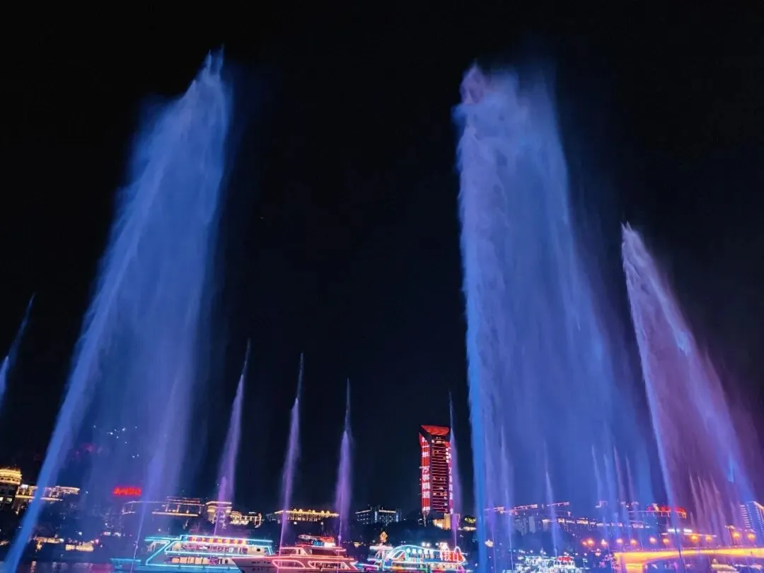 走到柳江边,赶在八点整的时候看了一场音乐喷泉。感觉像是第一次看,又依稀记不得什么时候在哪里好像看过。没有很震撼,但还是好看的,喜欢的。