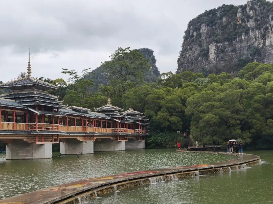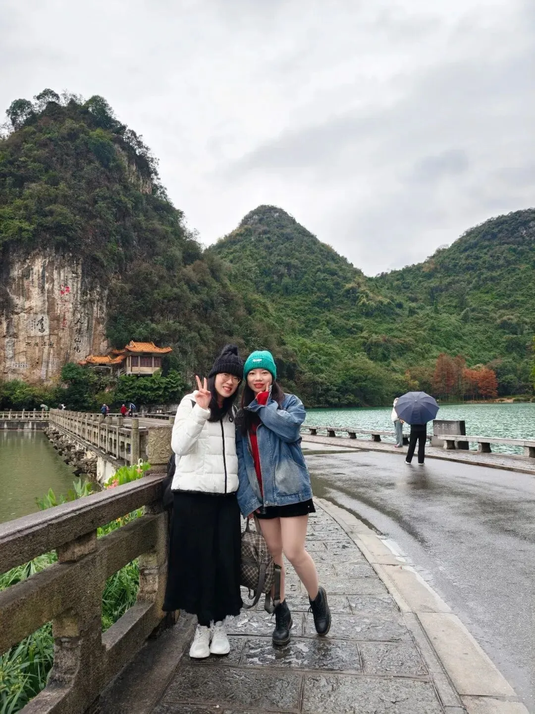 果然公园里冷冷清清没什么人,我们绕着公园走了一圈,打卡了歪脖子树,也不知道为什么公园里那么多歪脖子树,偏偏那一棵就不一样;打卡了风雨桥,桥上桥下是五元一张的摄影师,和捧着花篮一生倔强要出片的游客。风景不过出片的背景,不知道什么时候火起来的出片文化,让所有的旅游都剩一种目的。