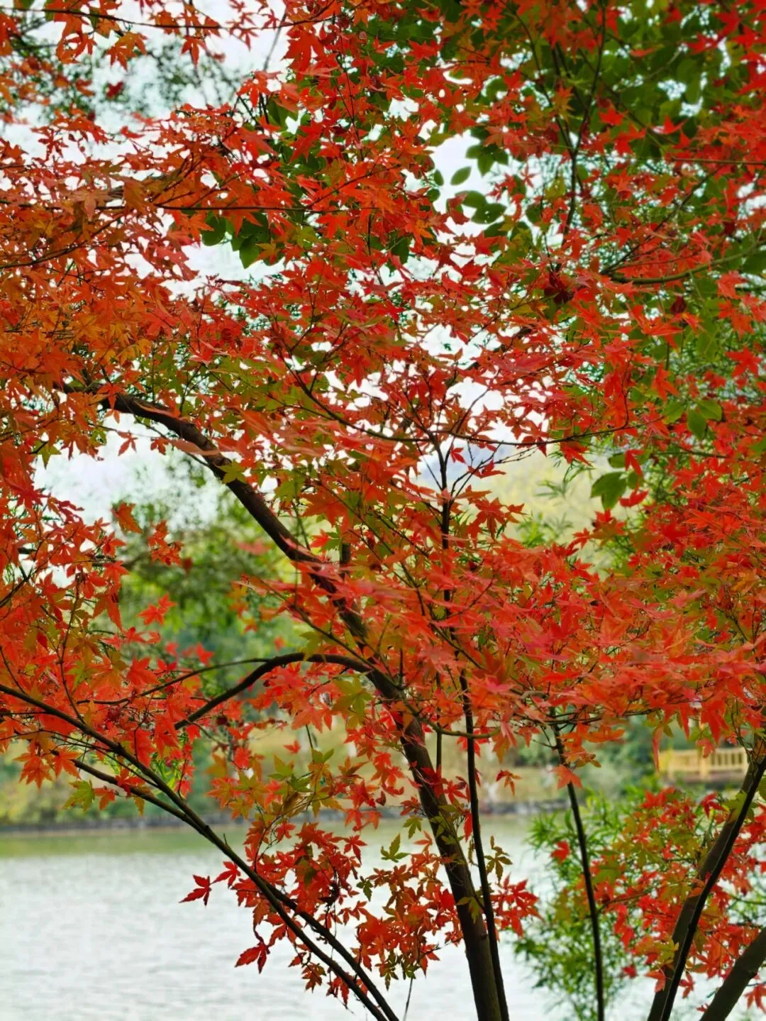 我们慢悠悠地走了一圈,看到好漂亮好漂亮的红的黄的枫叶。公园里有很多山,但我们都没有爬,要赶往下一个公园了。