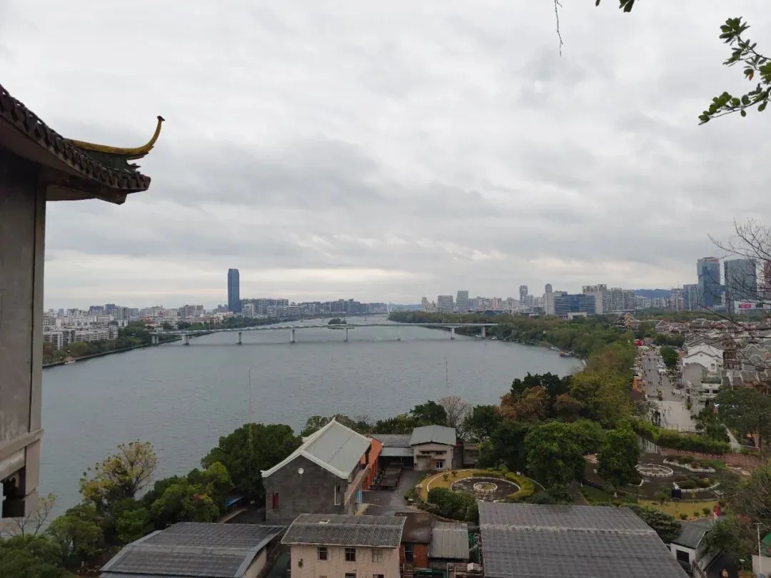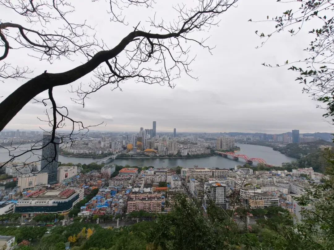 从东门出来,打车到马鞍山公园。一座纯爬山的公园,但没有很高,走着走着就到顶了。在山顶上看柳州全貌,风景独好。漂亮的柳江,一座座大桥连通两岸,俯瞰这座依山傍水的城市,只有此刻才最爱柳州。