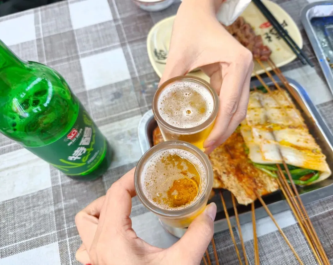 非常标准的游客食街,我们随意找了一家店坐下,吃了好吃的烧烤,喝了好喝的漓泉精酿,2026年就这样开始又结束了它的第一天。