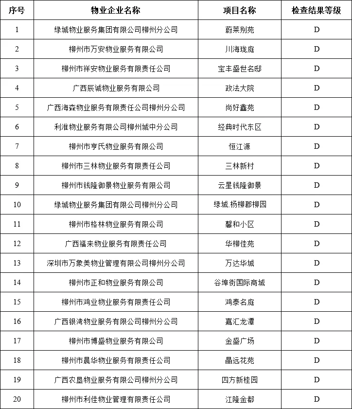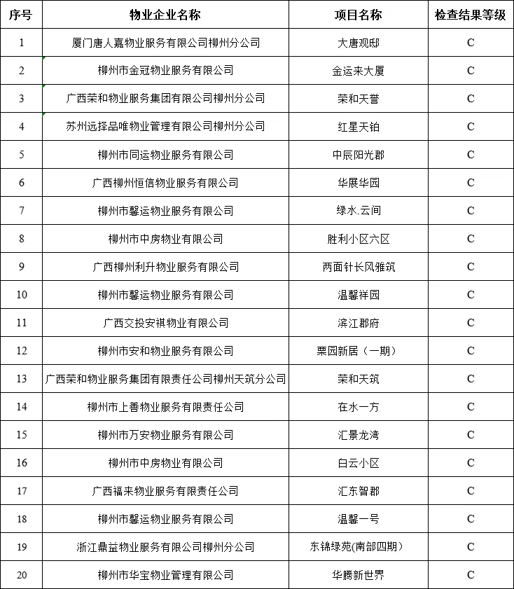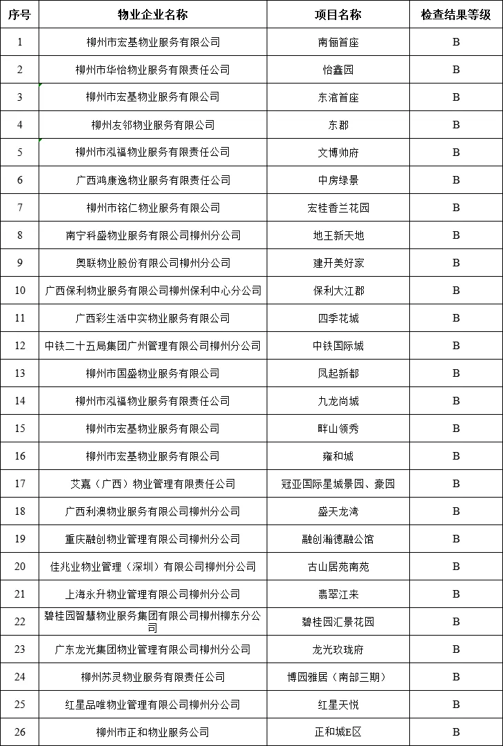 为进一步规范我市物业管理活动,提升物业行业服务质量,根据《广西壮族自治区物业管理条例》有关规定,我局组织开展了2025年度柳州市物业服务行业“双随机、一公开”专项检查工作。现将检查情况通报如下: