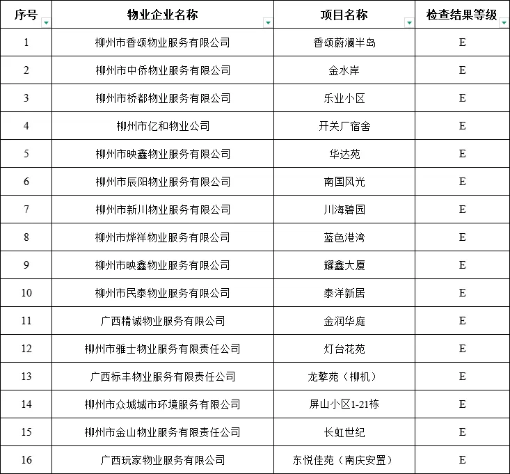 (一)对此次检查结果为E级的小区物业服务企业实行重点监管:
