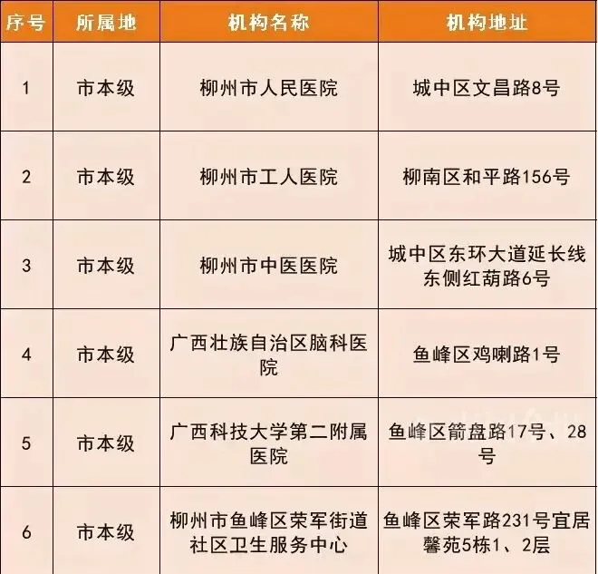 柳州市长期护理保险参保人员失能等级评估机构部分机构名单。(柳州医保公示)