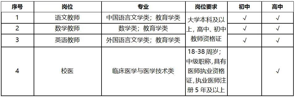 拟招聘语文/数学/英语教师、校医等
