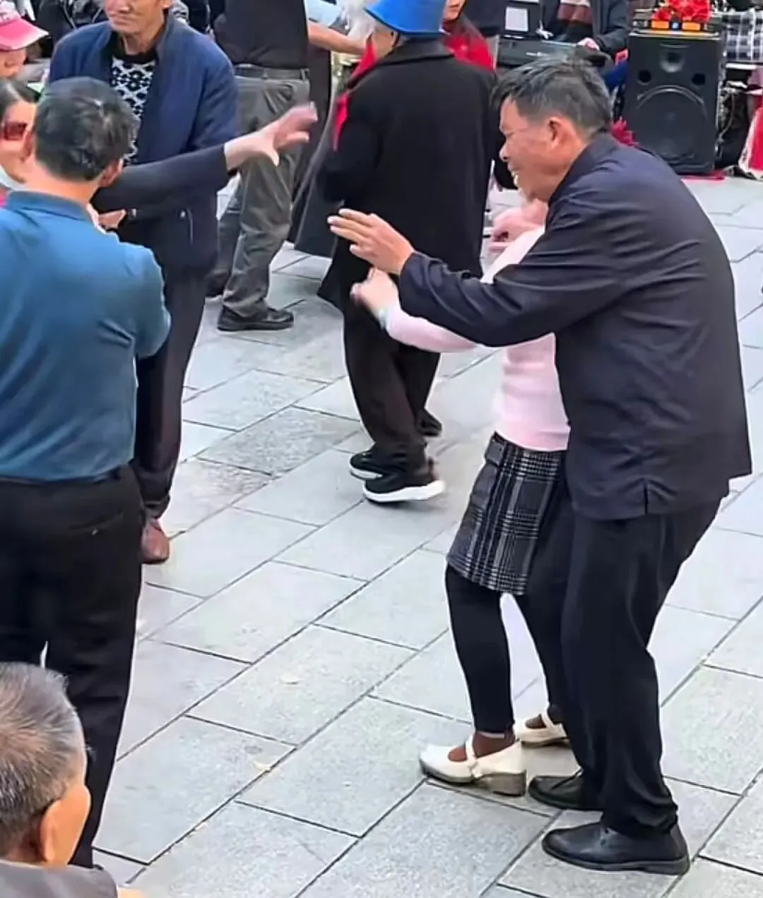 还有那做着电动轮椅去的大爷,走路都不利索,看到有大妈邀请,挣扎着也要站起来扭两下。