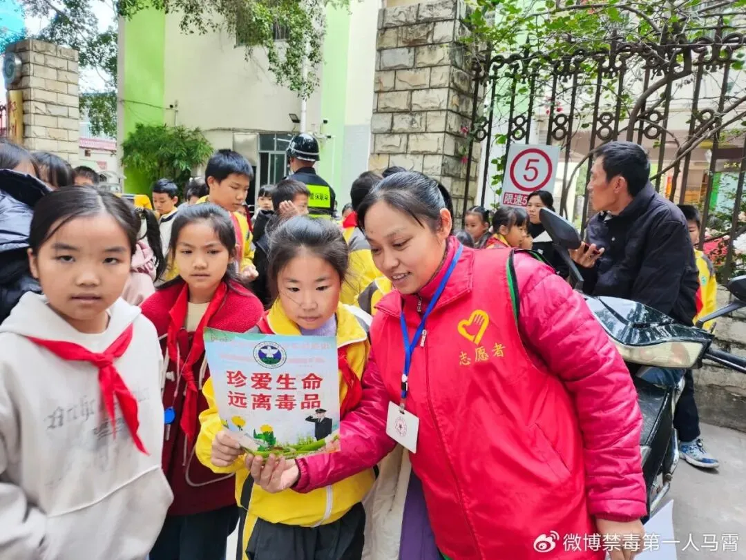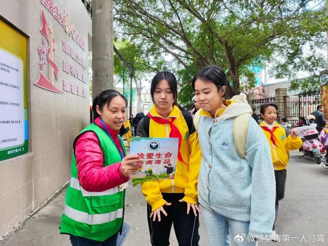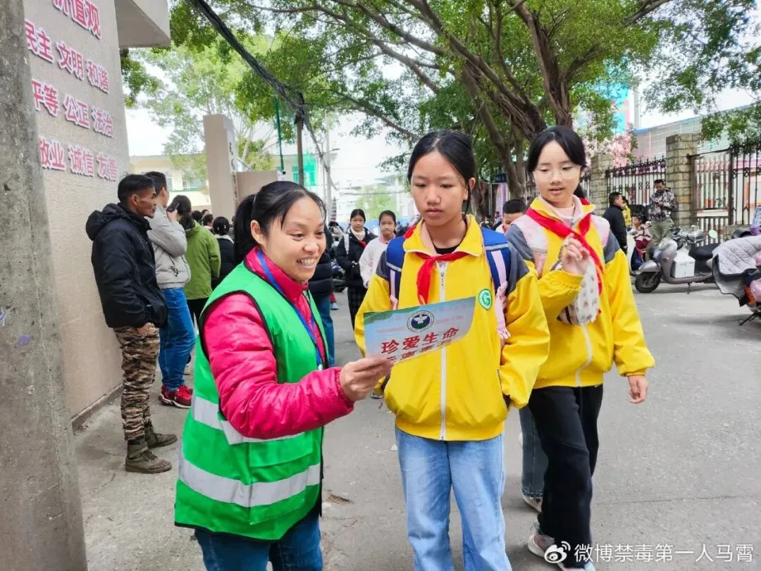 近日,当放学铃声响起,校园门口瞬间热闹起来。学生们如欢快的溪流涌出校门,家长们带着殷切的目光在此等候。就在这熙熙攘攘之中,一场意义非凡的禁毒宣传活动正有条不紊地展开。