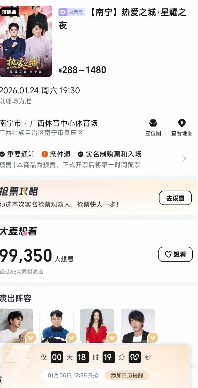 1月5日12:38,这场万众期待的演唱会门票将在以下平台同步开售:
