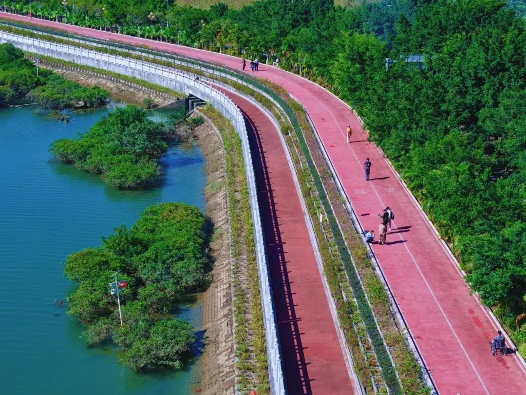 防城港市文化艺术中心(起点)—海边绿道—倒水坳大桥—北部湾大道绿道—海边绿道—东泰海都文化广场(终点)。全程约5.5公里。