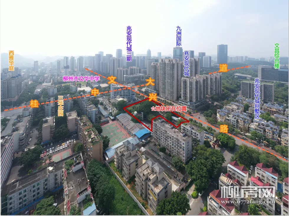 该宗地位于河东中心区的文兴路与桂中大道交汇处,出让面积合计13.69亩,土地用途为住宅和局部商业,容积率在1.5到2.5之间,按最大容积率计算地块体量约2.28万㎡,建筑限高60米。大概率就是2-3栋20层以内,200套左右的小型社区。