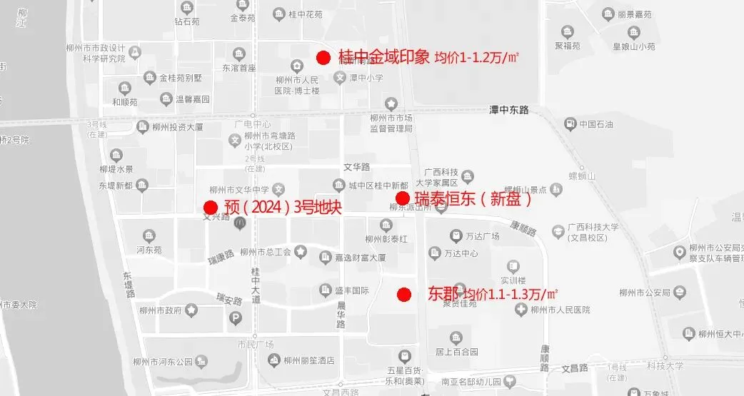 周边在售新盘有农投桂中金域印象,东郡,还有一个在建的纯新盘瑞泰恒东,在售房源均价在万元以上,并且套型都偏大,门槛较高。瑞泰恒东规划有小户型,但还未上市。地段好、市场好,该宗地又是当前房开比较意向的“小型地块”,很有可能顺利“出嫁”。
