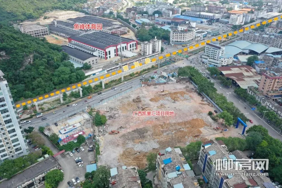 值得重点关注的是,广西凯誉汇项目也在附近,不到1公里。凯誉汇项目占地20亩,总建面约3.33万㎡,今年3月份拿地,目前地块平整基本完成,地块旁正在搭建营销中心,项目案名为麒麟尊府。