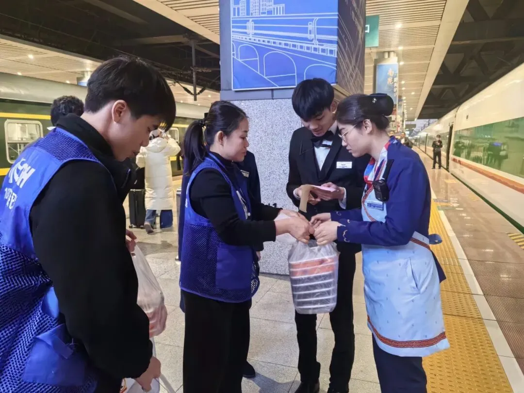 若您乘坐的动车在送餐服务覆盖范围内,可在列车抵达柳州站前1小时,扫描座位扶手上的“铁路畅行码”,预订当日现制、标准化封装的热链盒饭。工作人员将送餐至您的座位,让您旅途省心、用餐无忧。