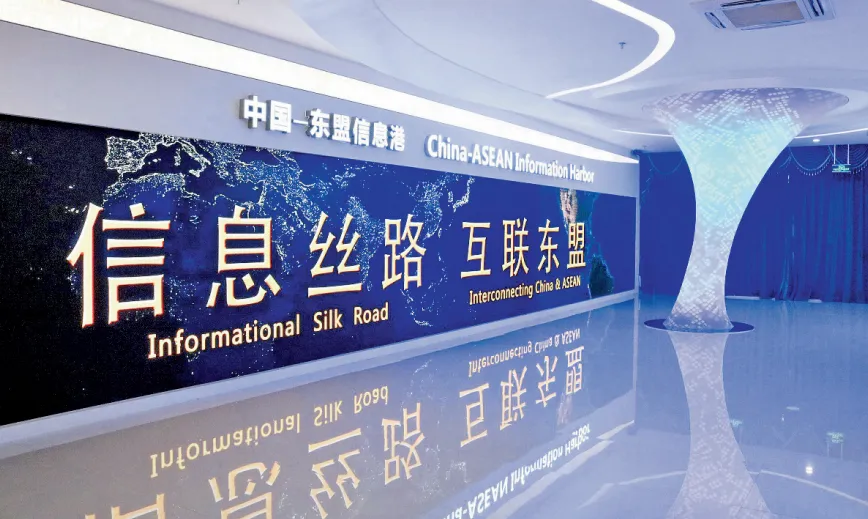 2004年以来,广西自贸试验区、中国—东盟信息港、面向东盟的金融开放门户等国家战略让企业客商通过“南宁渠道”开展经贸合作。图为 2023年12月14日,位于南宁五象新区的中国—东盟信息港展示中心 [图片来自《南宁年鉴(2024)》]