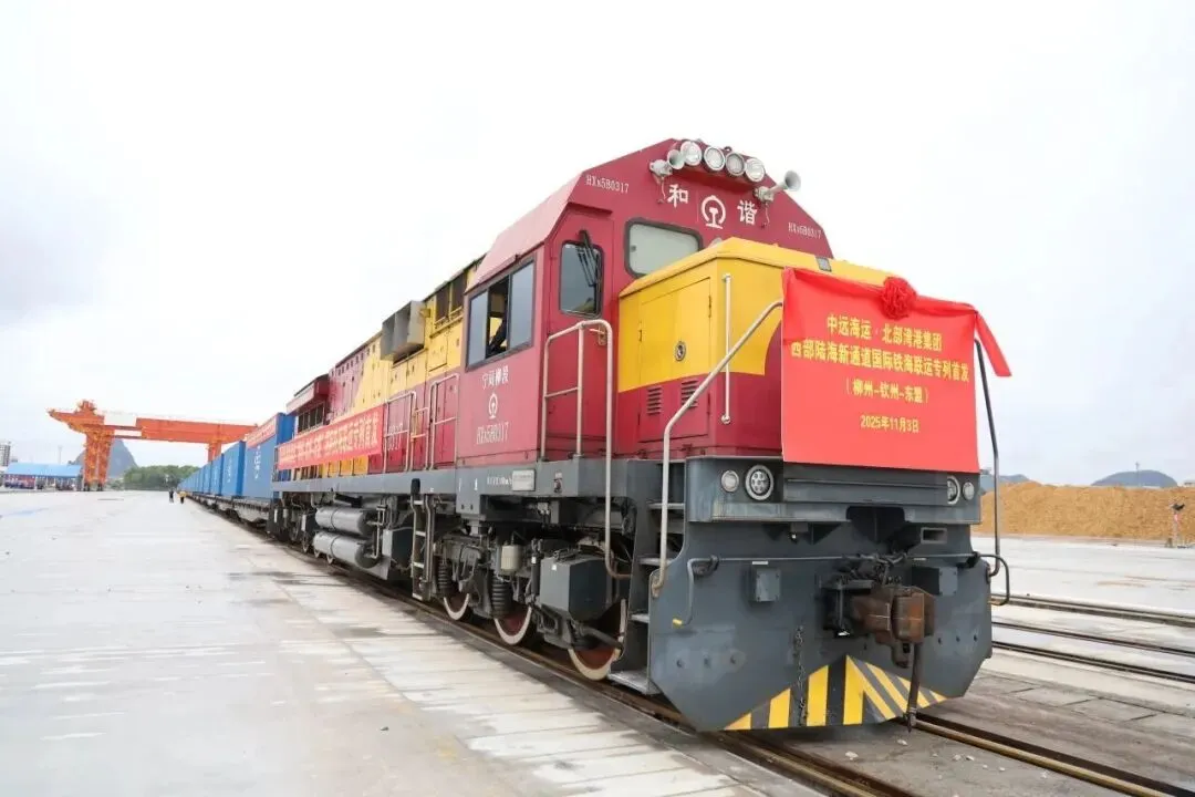 西部陆海新通道“柳州—钦州—东盟”铁海联运专列首发2025年11月3日,首列西部陆海新通道“柳州—钦州—东盟”铁海联运专列从柳州铁路港正式发车。该班列满载56个标准集装箱柜汽车零配件在柳州集结后,经铁路到达钦州港。随后换乘海轮扬帆起航,发往马来西亚,将西部陆海新通道铁海联运班列辐射范围延伸至更多东盟国家。