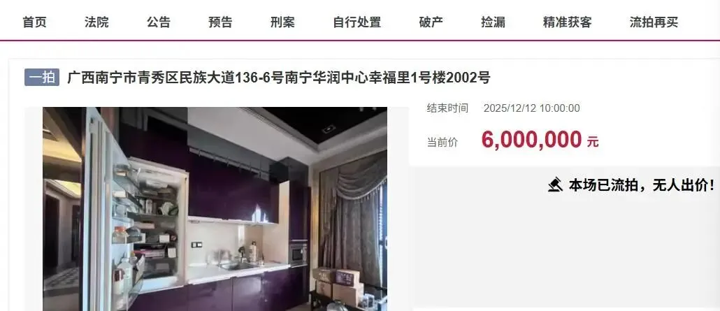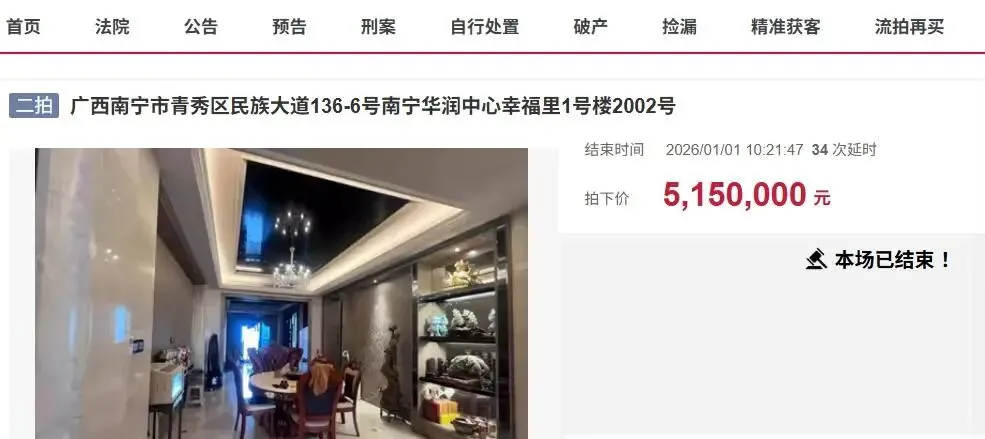此前这套华润幸福里的大平层被拍卖过一次,起拍价是600万元,不过没有人报名竞拍而流拍了。