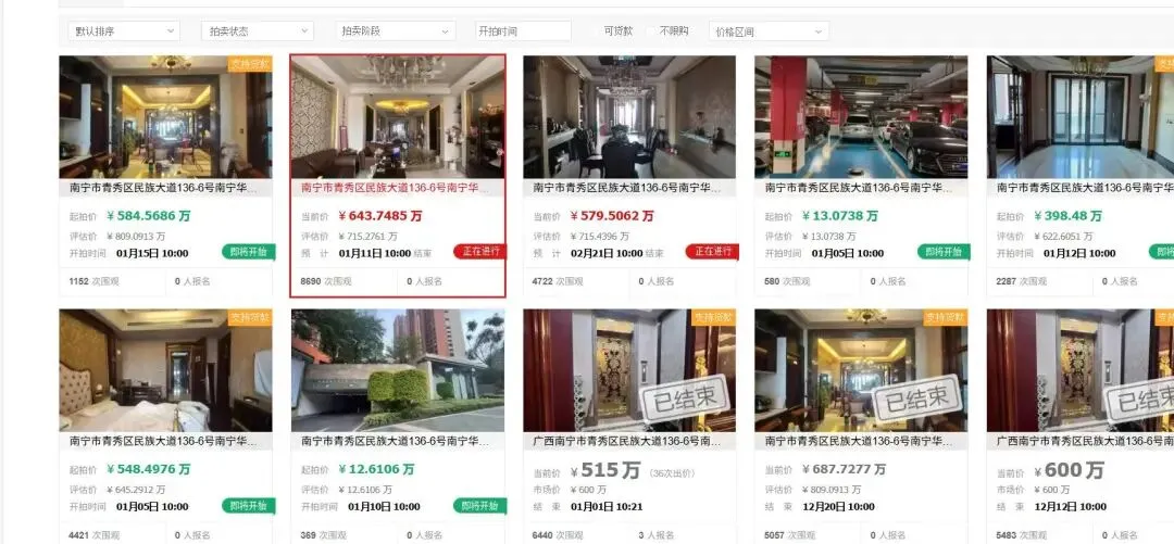 近日,在阿里拍卖上,南宁市迎来了一宗重量级的豪宅拍卖,南宁市知名豪宅小区,位于南宁市青秀区民族大道136-6号南宁华润中心幸福里的1号楼一套大平层豪宅被拍卖。此次拍卖的大平层,建筑面积高达281.35平方米,一梯一户精装大平层,户型为五房三厅四卫,五房其中一房属于保姆房,其他四房自带小阳台。该房屋包含中央空调和中央热水器在内,南北对流双阳台,楼高3.6米。原权属人居住中,目前未迁出,未腾空。不过此次拍卖,法院会负责清场交付,不用担心拿不到房子。